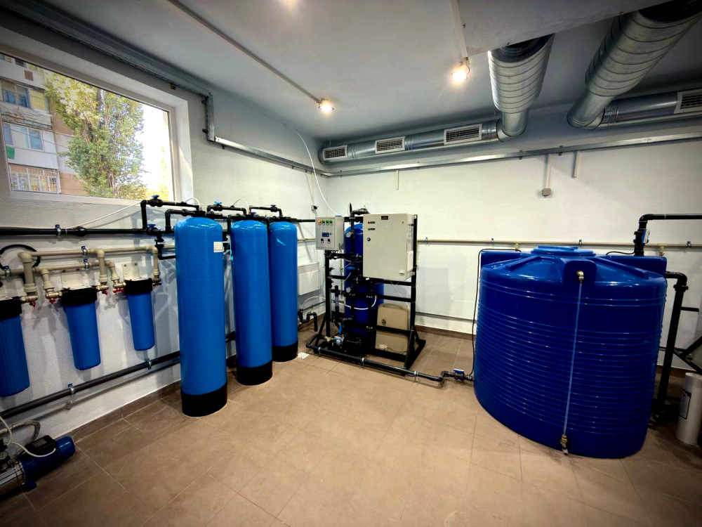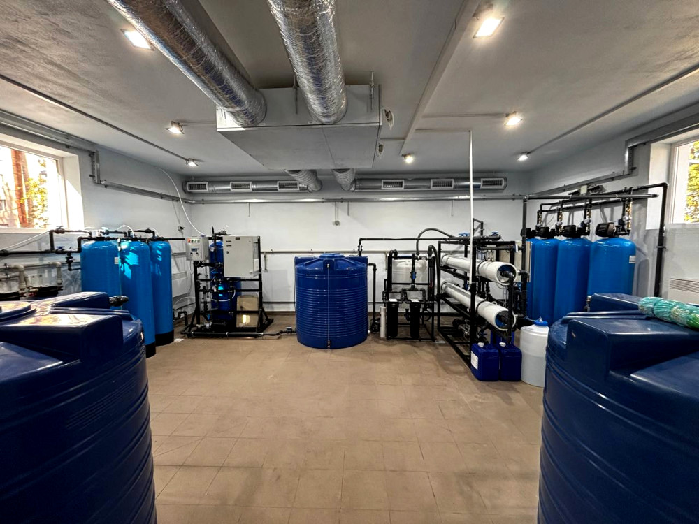 Комплекс обладнано артезіанською свердловиною глибиною понад 115 метрів, що забезпечує дебіт води 3–4 кубометри на годину. Вода проходить повний цикл очищення, включаючи аерування, механічну фільтрацію, зворотний осмос, озонування та обробку через вугільні фільтри.